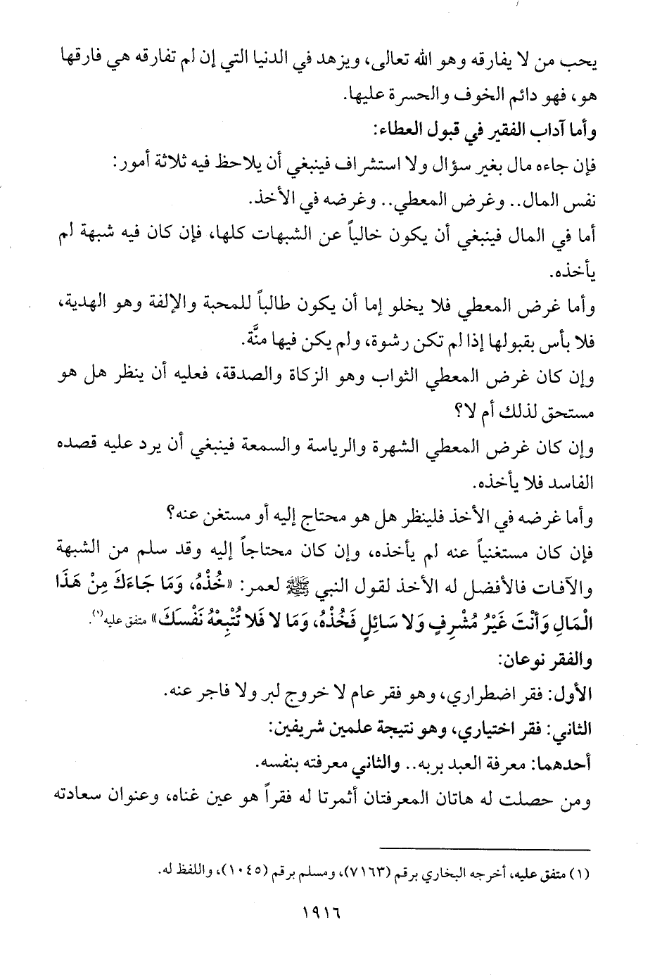 الثاني: فقر اختياري، وهو نتيجة علمين شريفين: