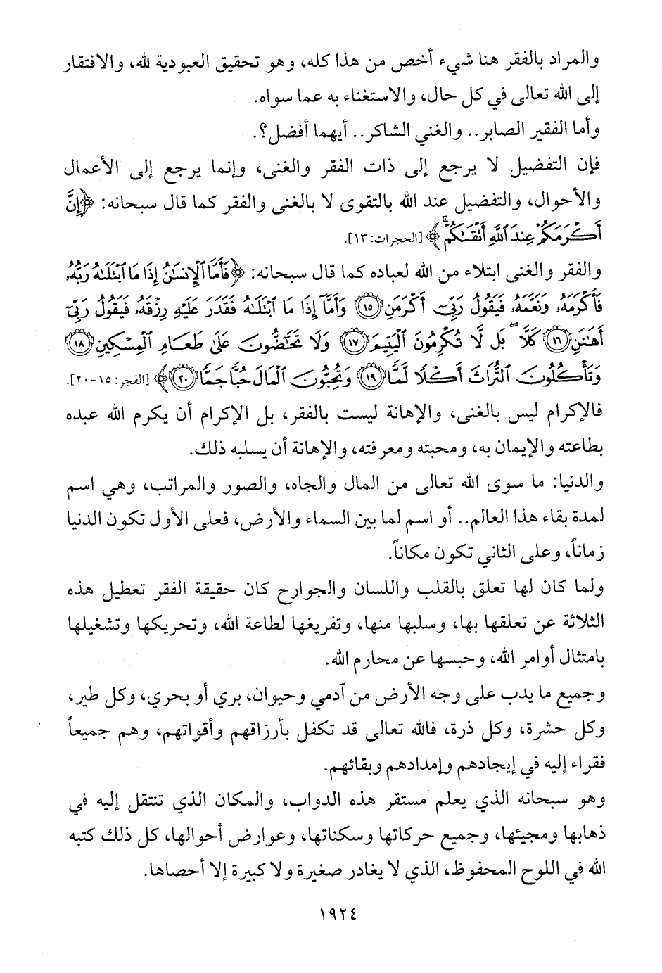 والمراد بالفقر هنا شيء أخص من هذا كله، وهو تحقيق العبودية لله، والافتقار إلى الله تعالى في كل حال، والاستغناء به عما سواه.