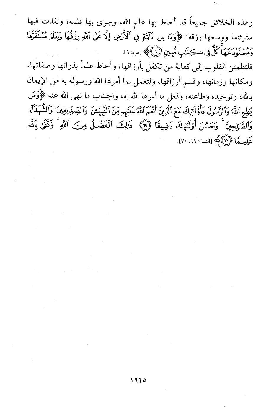 فلتطمئن القلوب إلى كفاية من تكفل بأرزاقها، وأحاط علماً بذواتها وصفاتها، ومكانها وزمانها، وقسم أرزاقها، ولتعمل بما أمرها الله ورسوله به من الإيمان بالله، وتوحيده وطاعته، وفعل ما أمرها الله به، واجتناب ما نهى الله عنه {وَمَنْ يُطِعِ اللَّهَ وَالرَّسُولَ فَأُولَئِكَ مَعَ الَّذِينَ أَنْعَمَ اللَّهُ عَلَيْهِمْ مِنَ النَّبِيِّينَ وَالصِّدِّيقِينَ وَالشُّهَدَاءِ وَالصَّالِحِينَ وَحَسُنَ أُولَئِكَ رَفِيقًا (69) ذَلِكَ الْفَضْلُ مِنَ اللَّهِ وَكَفَى بِاللَّهِ عَلِيمًا (70)} [النساء: 69، 70].