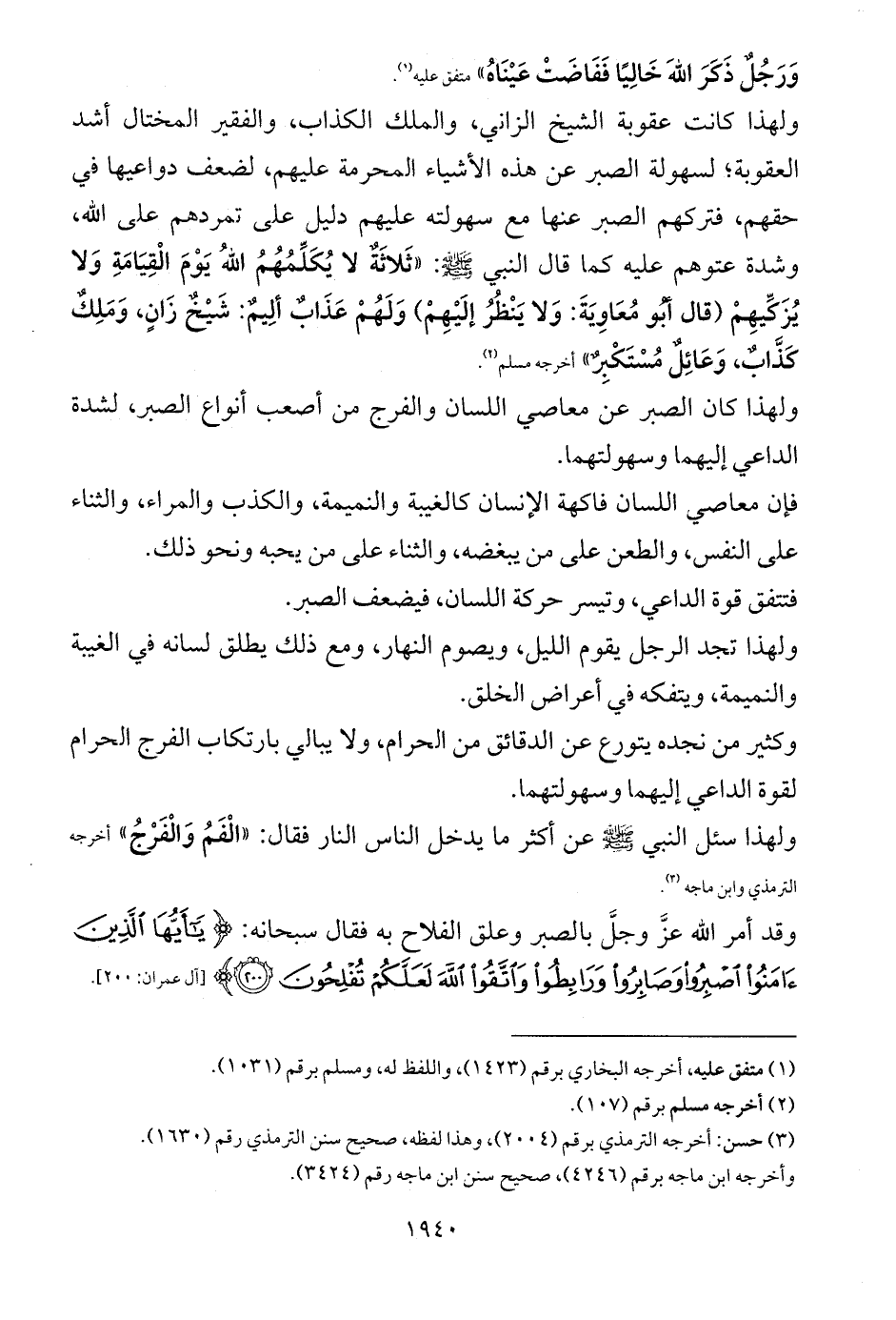 ولهذا سئل النبي - صلى الله عليه وسلم - عن أكثر ما يدخل الناس النار فقال: «الْفَمُ وَالْفَرْجُ» أخرجه الترمذي وابن ماجه (¬3).