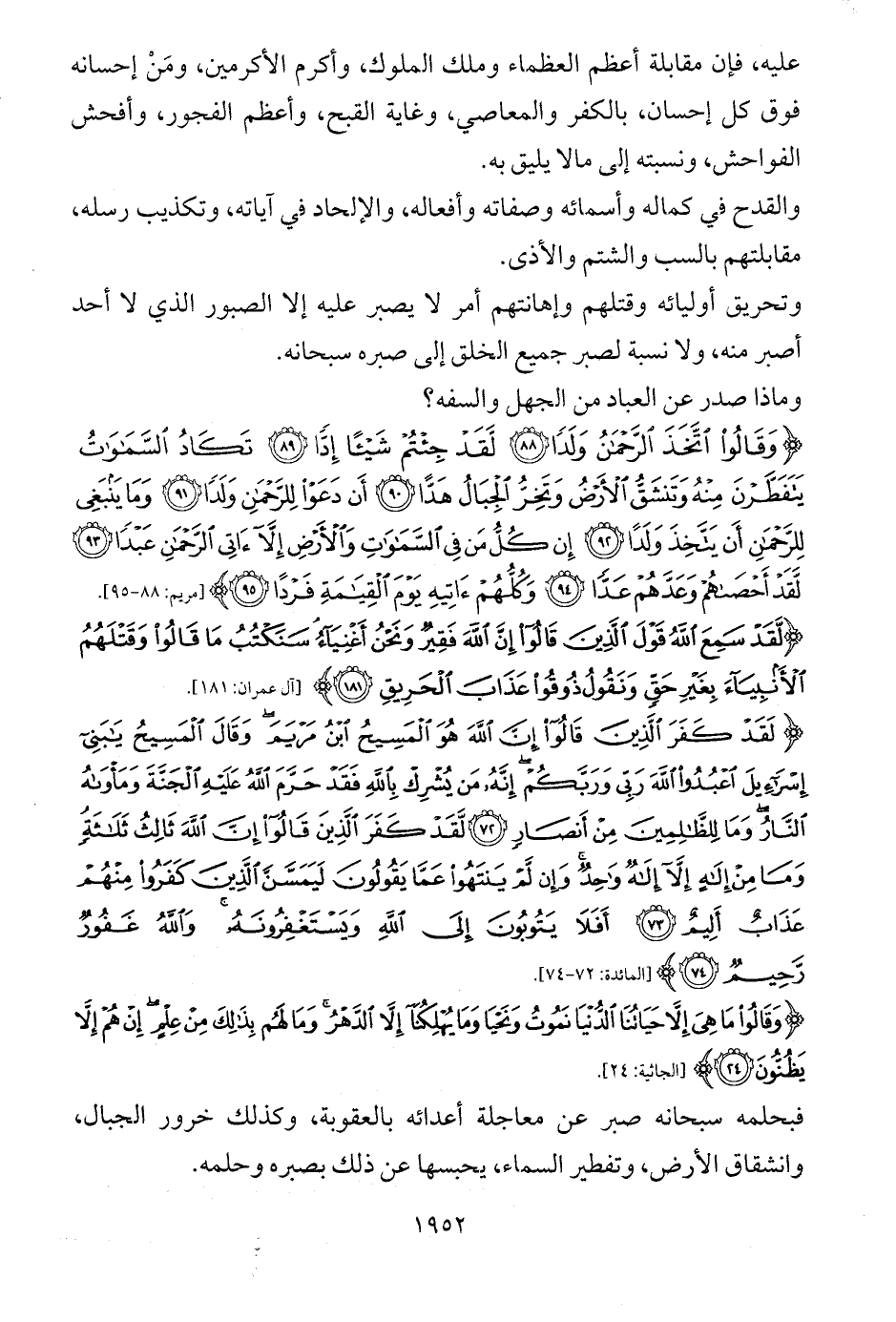 فبحلمه سبحانه صبر عن معاجلة أعدائه بالعقوبة، وكذلك خرور الجبال، وانشقاق الأرض، وتفطير السماء، يحبسها عن ذلك بصبره وحلمه.