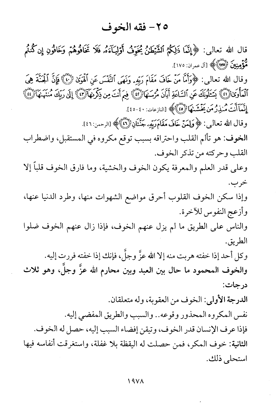 والخوف المحمود ما حال بين العبد وبين محارم الله عزَّ وجلَّ، وهو ثلاث درجات: