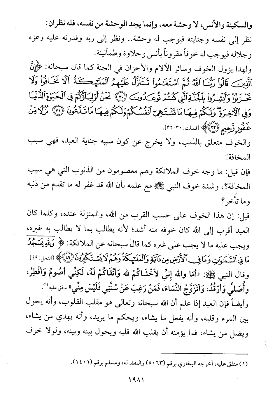 نظر إلى نفسه وجنايته فيوجب له وحشة .. ونظر إلى ربه وقدرته عليه وعزه وجلاله فيوجب له خوفاً مقروناً بأنس وحلاوة وطمأنينة.