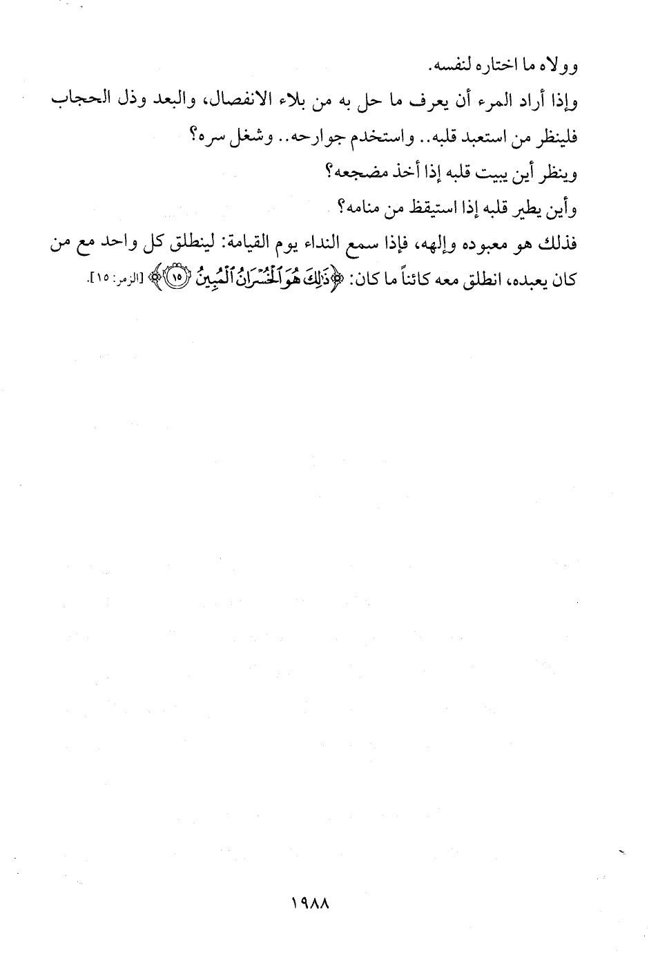 فذلك هو معبوده وإلهه، فإذا سمع النداء يوم القيامة: لينطلق كل واحد مع من كان يعبده، انطلق معه كائناً ما كان: {ذَلِكَ هُوَ الْخُسْرَانُ الْمُبِينُ (15)} [الزمر: 15].