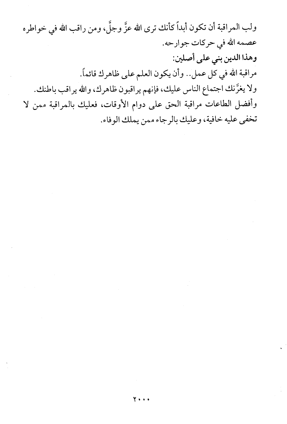 مراقبة الله في كل عمل .. وأن يكون العلم على ظاهرك قائماً.