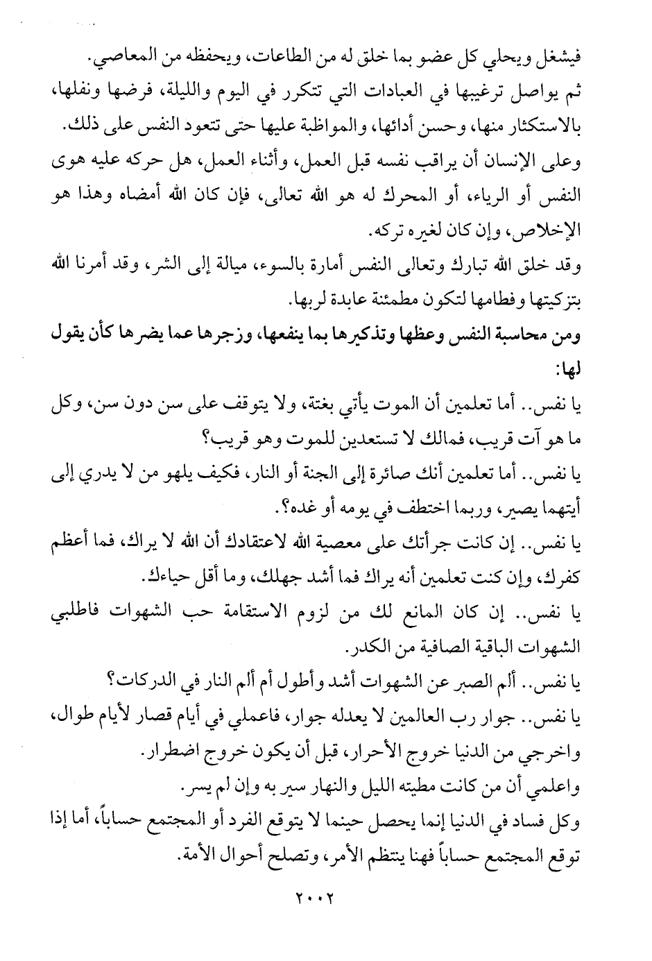 يا نفس .. أما تعلمين أنك صائرة إلى الجنة أو النار، فكيف يلهو من لا يدري إلى أيتهما يصير، وربما اختطف في يومه أو غده؟.