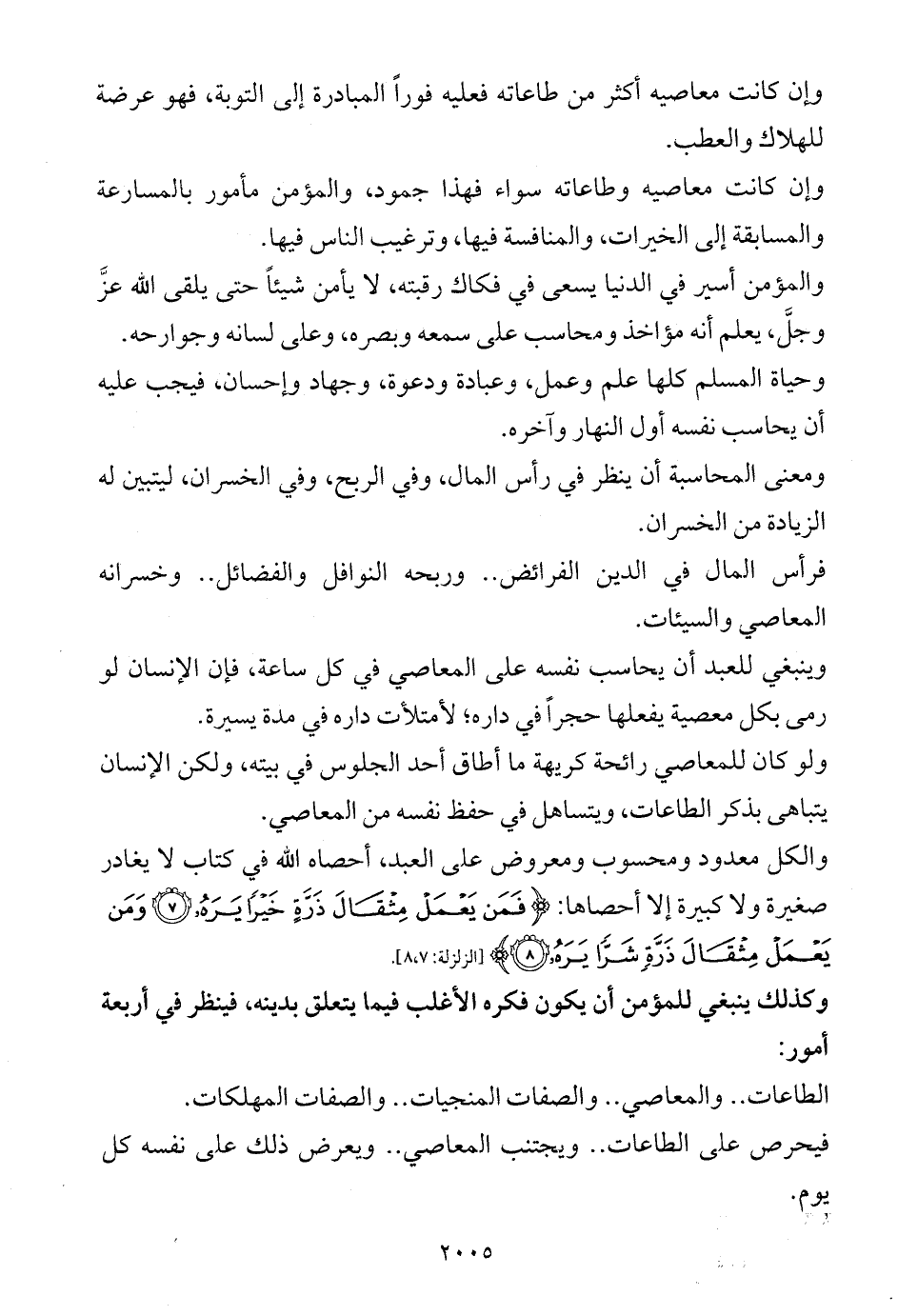 فيحرص على الطاعات .. ويجتنب المعاصي .. ويعرض ذلك على نفسه كل يوم.