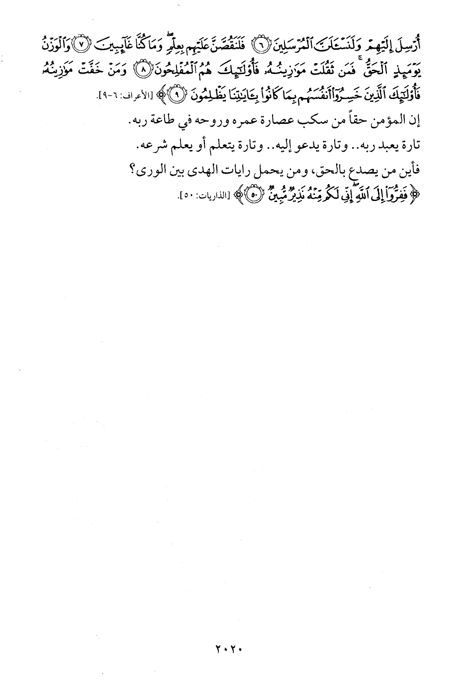 أُرْسِلَ إِلَيْهِمْ وَلَنَسْأَلَنَّ الْمُرْسَلِينَ (6) فَلَنَقُصَّنَّ عَلَيْهِمْ بِعِلْمٍ وَمَا كُنَّا غَائِبِينَ (7) وَالْوَزْنُ يَوْمَئِذٍ الْحَقُّ فَمَنْ ثَقُلَتْ مَوَازِينُهُ فَأُولَئِكَ هُمُ الْمُفْلِحُونَ (8) وَمَنْ خَفَّتْ مَوَازِينُهُ فَأُولَئِكَ الَّذِينَ خَسِرُوا أَنْفُسَهُمْ بِمَا كَانُوا بِآيَاتِنَا يَظْلِمُونَ (9)} [الأعراف: 6 - 9].