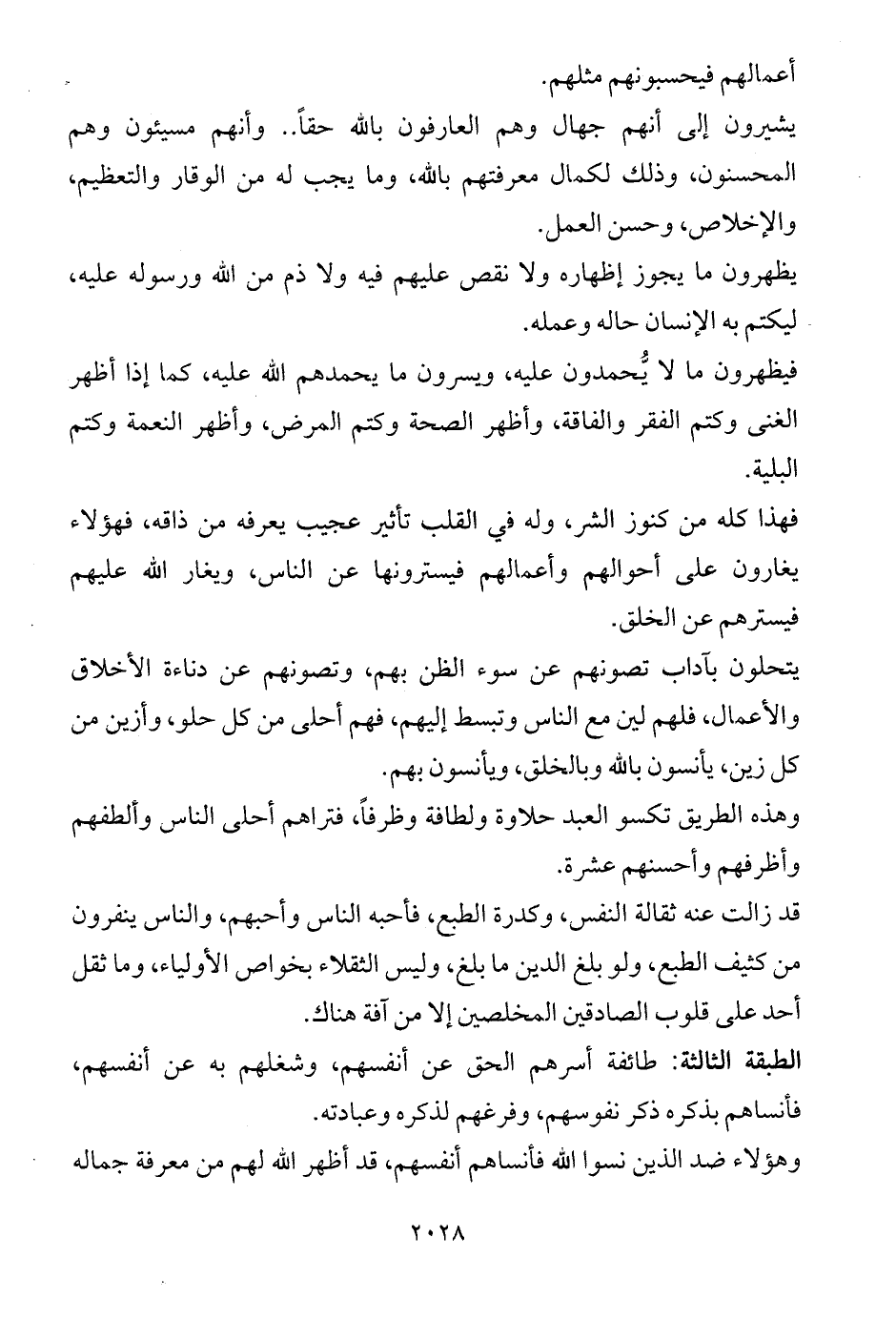 الطبقة الثالثة: طائفة أسرهم الحق عن أنفسهم، وشغلهم به عن أنفسهم، فأنساهم بذكره ذكر نفوسهم، وفرغهم لذكره وعبادته.