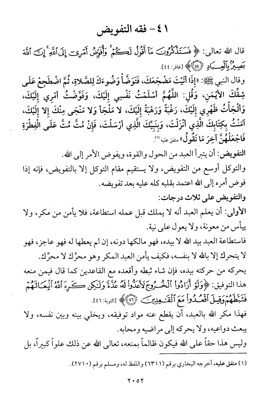 التفويض: أن يتبرأ العبد من الحول والقوة، ويفوض الأمر إلى الله.