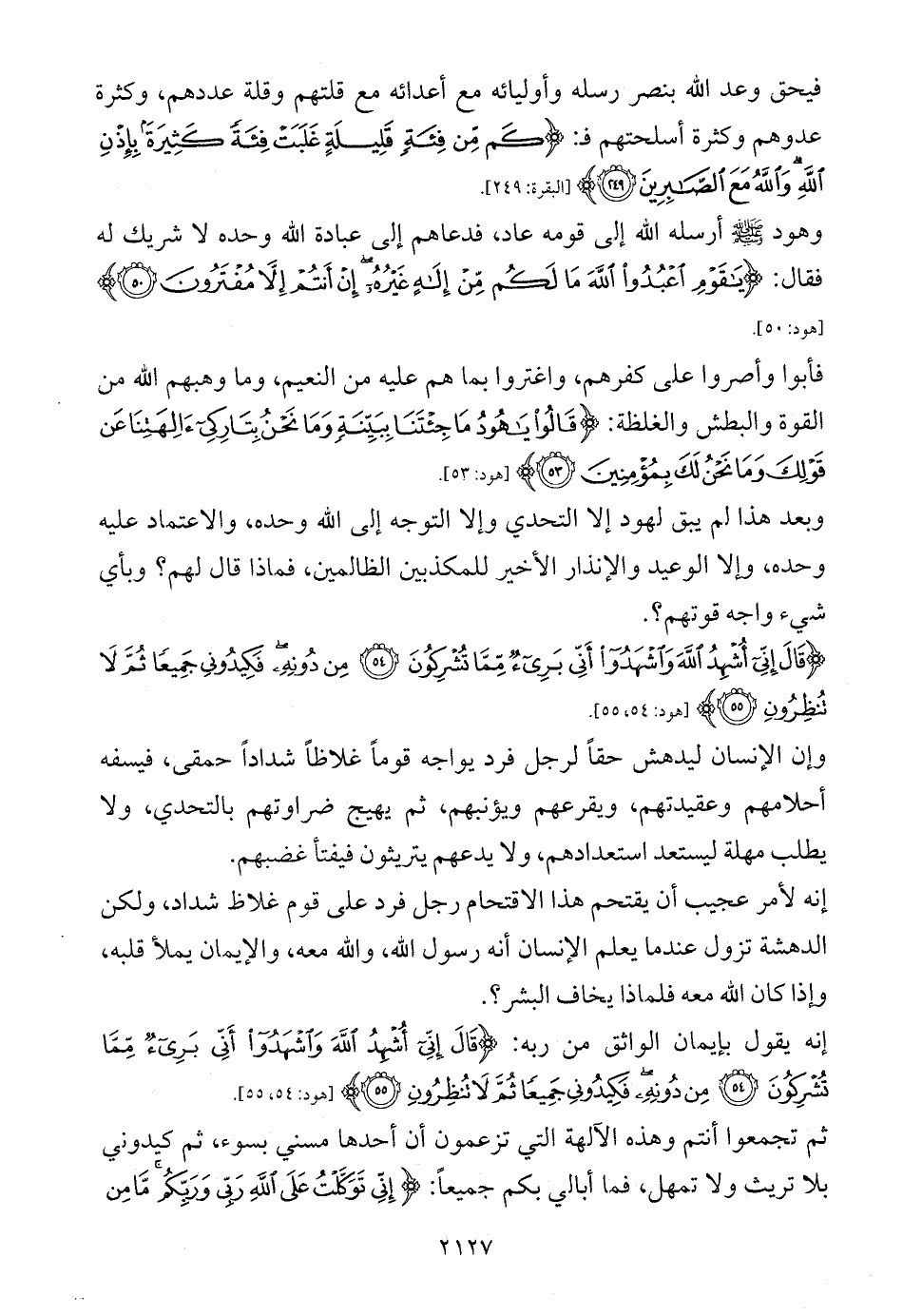 إنه يقول بإيمان الواثق من ربه: {قَالَ إِنِّي أُشْهِدُ اللَّهَ وَاشْهَدُوا أَنِّي بَرِيءٌ مِمَّا تُشْرِكُونَ (54) مِنْ دُونِهِ فَكِيدُونِي جَمِيعًا ثُمَّ لَا تُنْظِرُونِ (55)} [هود: 54، 55].