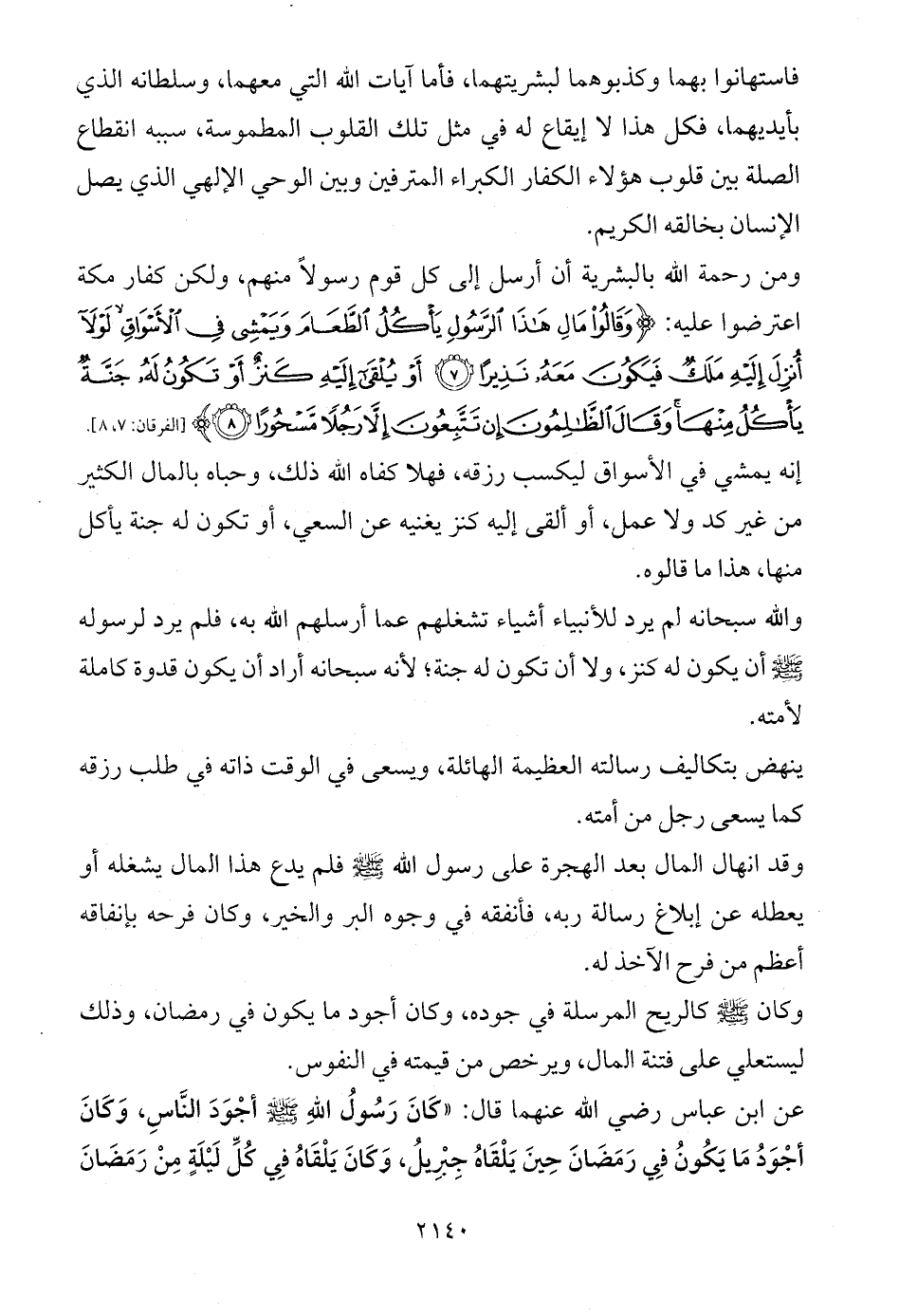 عن ابن عباس رضي الله عنهما قال: «كَانَ رَسُولُ اللهِ - صلى الله عليه وسلم - أجْوَدَ النَّاسِ، وَكَانَ أجْوَدُ مَا يَكُونُ فِي رَمَضَانَ حِينَ يَلْقَاهُ جِبْرِيلُ، وَكَانَ يَلْقَاهُ فِي كُلِّ لَيْلَةٍ مِنْ رَمَضَانَ