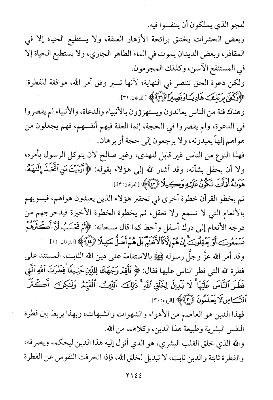 فهذا الدين هو العاصم من الأهواء والشهوات والشبهات، وبهذا يربط بين فطرة النفس البشرية وطبيعة هذا الدين، وكلاهما من الله.