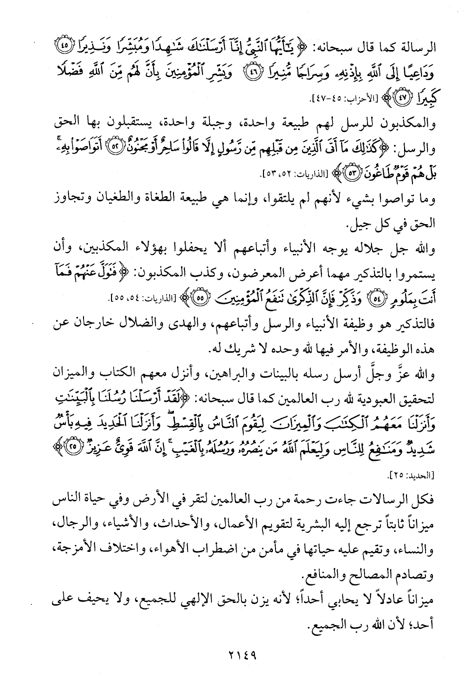 والله عزَّ وجلَّ أرسل رسله بالبينات والبراهين، وأنزل معهم الكتاب والميزان لتحقيق العبودية لله رب العالمين كما قال سبحانه: {لَقَدْ أَرْسَلْنَا رُسُلَنَا بِالْبَيِّنَاتِ وَأَنْزَلْنَا مَعَهُمُ الْكِتَابَ وَالْمِيزَانَ لِيَقُومَ النَّاسُ بِالْقِسْطِ وَأَنْزَلْنَا الْحَدِيدَ فِيهِ بَأْسٌ شَدِيدٌ وَمَنَافِعُ لِلنَّاسِ وَلِيَعْلَمَ اللَّهُ مَنْ يَنْصُرُهُ وَرُسُلَهُ بِالْغَيْبِ إِنَّ اللَّهَ قَوِيٌّ عَزِيزٌ (25)} [الحديد: 25].