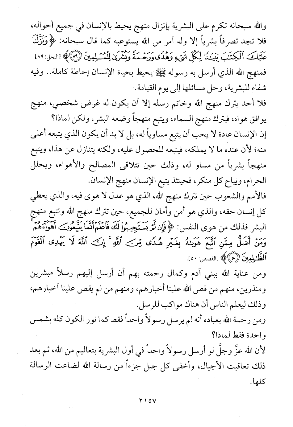 فمنهج الله الذي أرسل به رسوله - صلى الله عليه وسلم - يحيط بحياة الإنسان إحاطة كاملة .. وفيه شفاء للبشرية، وحل مسائلها إلى يوم القيامة.