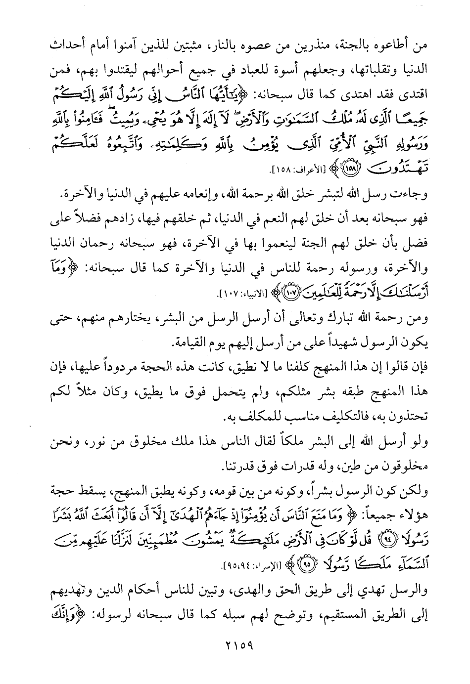 ومن رحمة الله تبارك وتعالى أن أرسل الرسل من البشر، يختارهم منهم، حتى يكون الرسول شهيداً على من أرسل إليهم يوم القيامة.