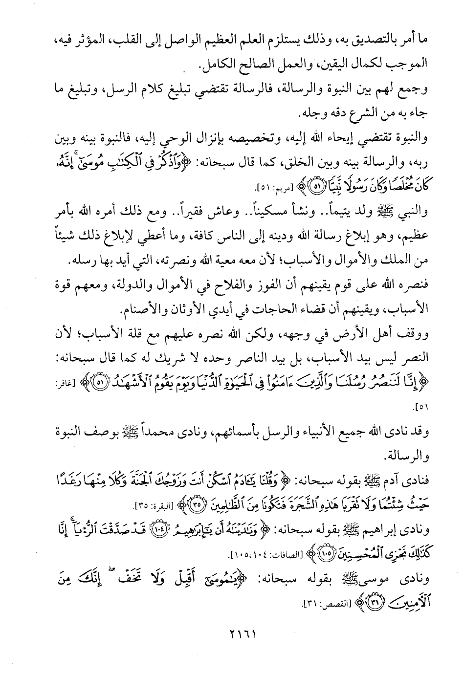والنبوة تقتضي إيحاء الله إليه، وتخصيصه بإنزال الوحي إليه، فالنبوة بينه وبين ربه، والرسالة بينه وبين الخلق، كما قال سبحانه: {وَاذْكُرْ فِي الْكِتَابِ مُوسَى إِنَّهُ كَانَ مُخْلَصًا وَكَانَ رَسُولًا نَبِيًّا (51)} [مريم: 51].