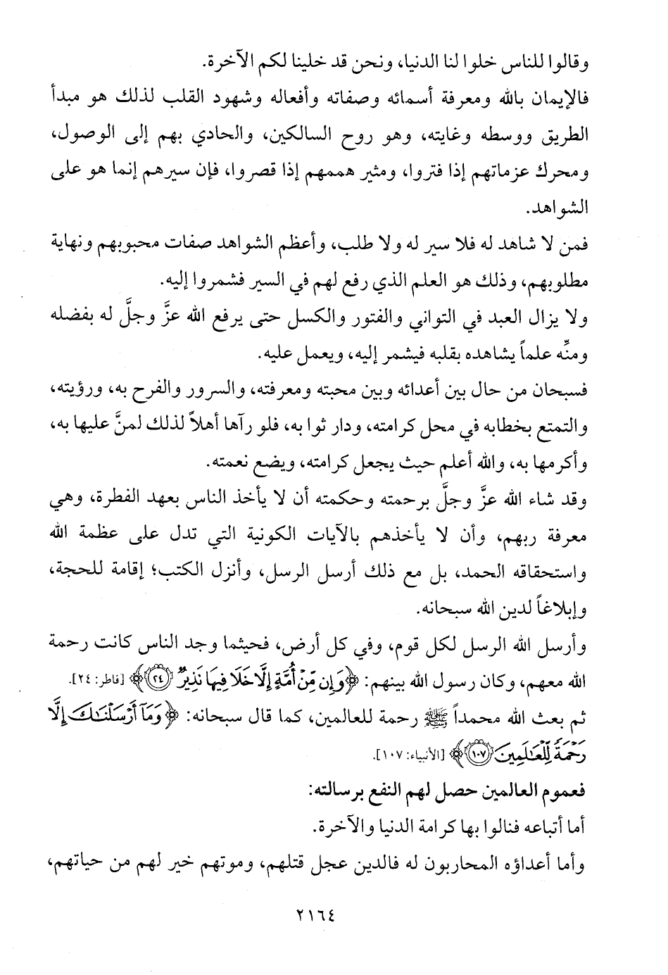 فالإيمان بالله ومعرفة أسمائه وصفاته وأفعاله وشهود القلب لذلك هو مبدأ الطريق ووسطه وغايته، وهو روح السالكين، والحادي بهم إلى الوصول، ومحرك عزماتهم إذا فتروا، ومثير هممهم إذا قصروا، فإن سيرهم إنما هو على الشواهد.