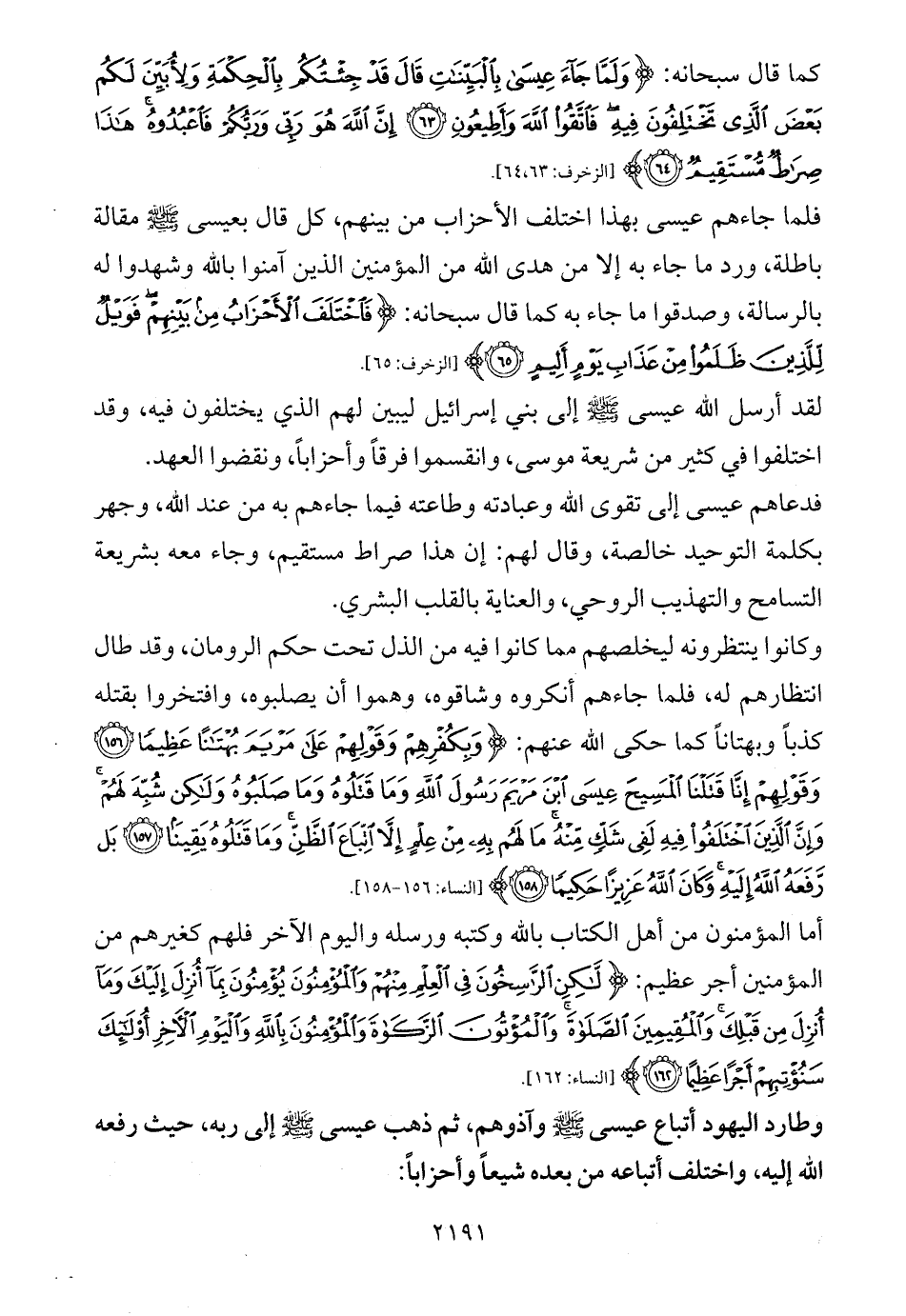 كما قال سبحانه: {وَلَمَّا جَاءَ عِيسَى بِالْبَيِّنَاتِ قَالَ قَدْ جِئْتُكُمْ بِالْحِكْمَةِ وَلِأُبَيِّنَ لَكُمْ بَعْضَ الَّذِي تَخْتَلِفُونَ فِيهِ فَاتَّقُوا اللَّهَ وَأَطِيعُونِ (63) إِنَّ اللَّهَ هُوَ رَبِّي وَرَبُّكُمْ فَاعْبُدُوهُ هَذَا صِرَاطٌ مُسْتَقِيمٌ (64)} [الزخرف: 63،64].
