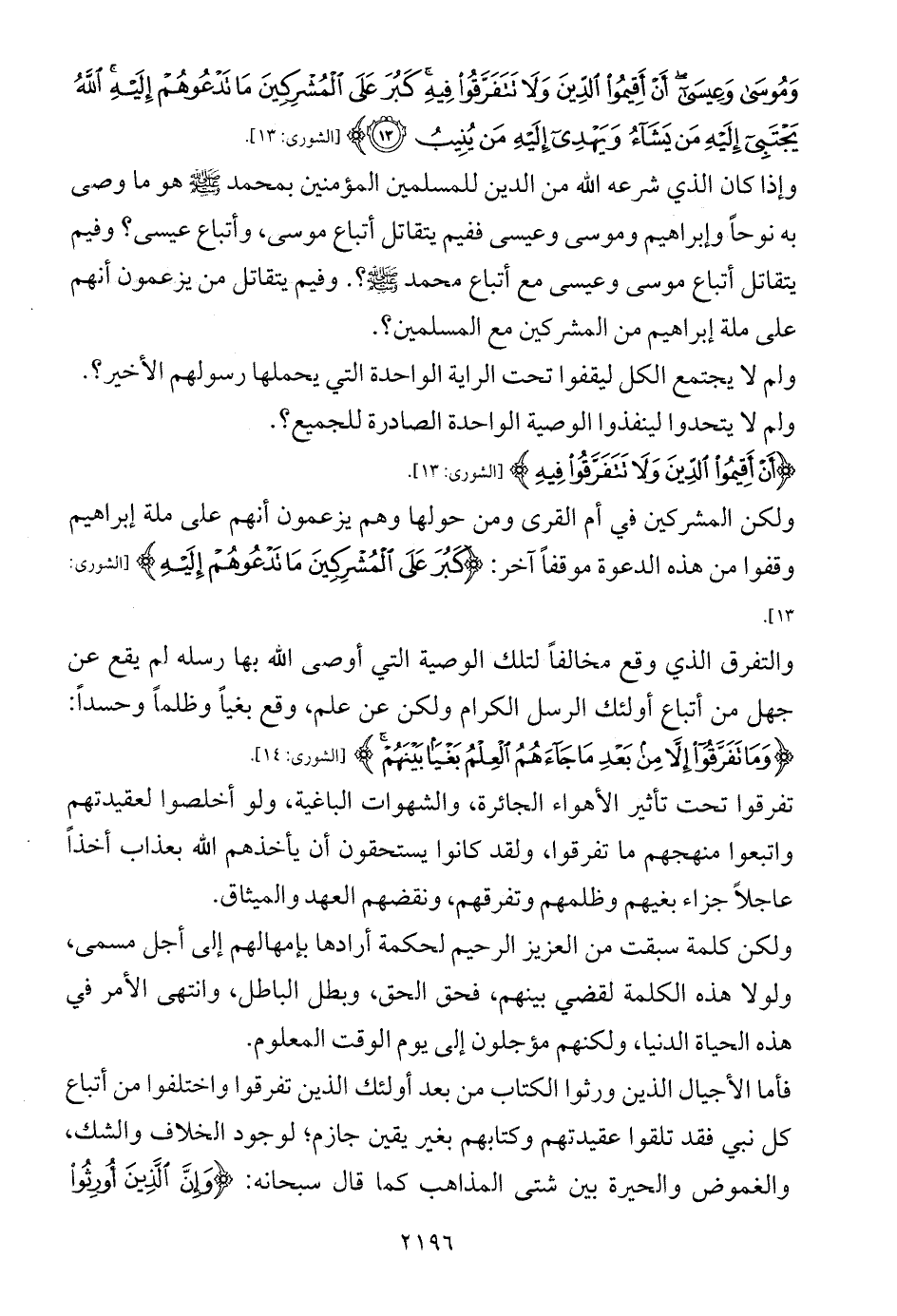 {أَنْ أَقِيمُوا الدِّينَ وَلَا تَتَفَرَّقُوا فِيهِ} [الشورى: 13].
