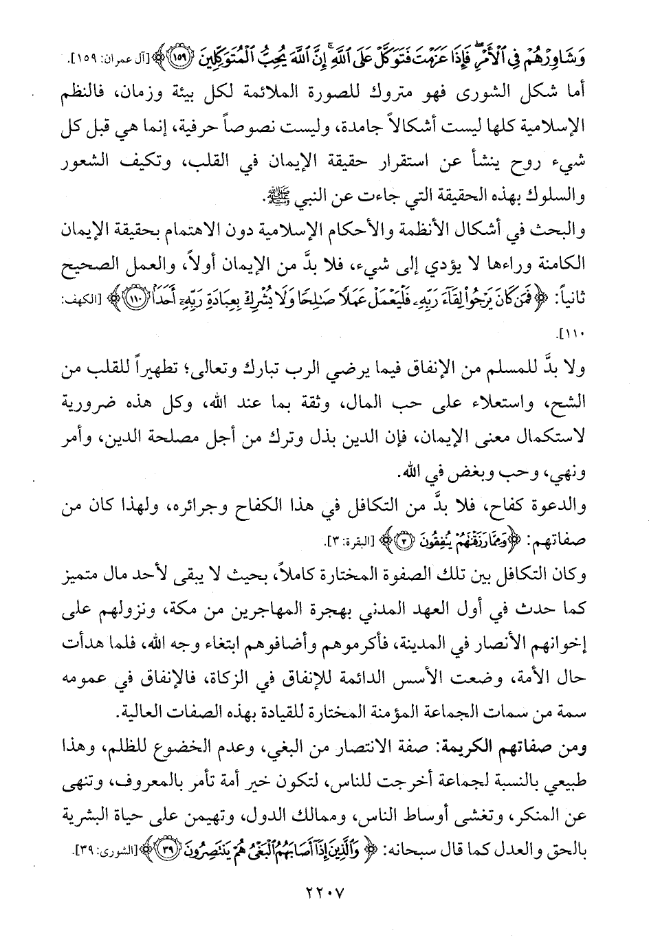 والبحث في أشكال الأنظمة والأحكام الإسلامية دون الاهتمام بحقيقة الإيمان الكامنة وراءها لا يؤدي إلى شيء، فلا بدَّ من الإيمان أولاً، والعمل الصحيح ثانياً: {فَمَنْ كَانَ يَرْجُو لِقَاءَ رَبِّهِ فَلْيَعْمَلْ عَمَلًا صَالِحًا وَلَا يُشْرِكْ بِعِبَادَةِ رَبِّهِ أَحَدًا (110)} [الكهف: 110].
