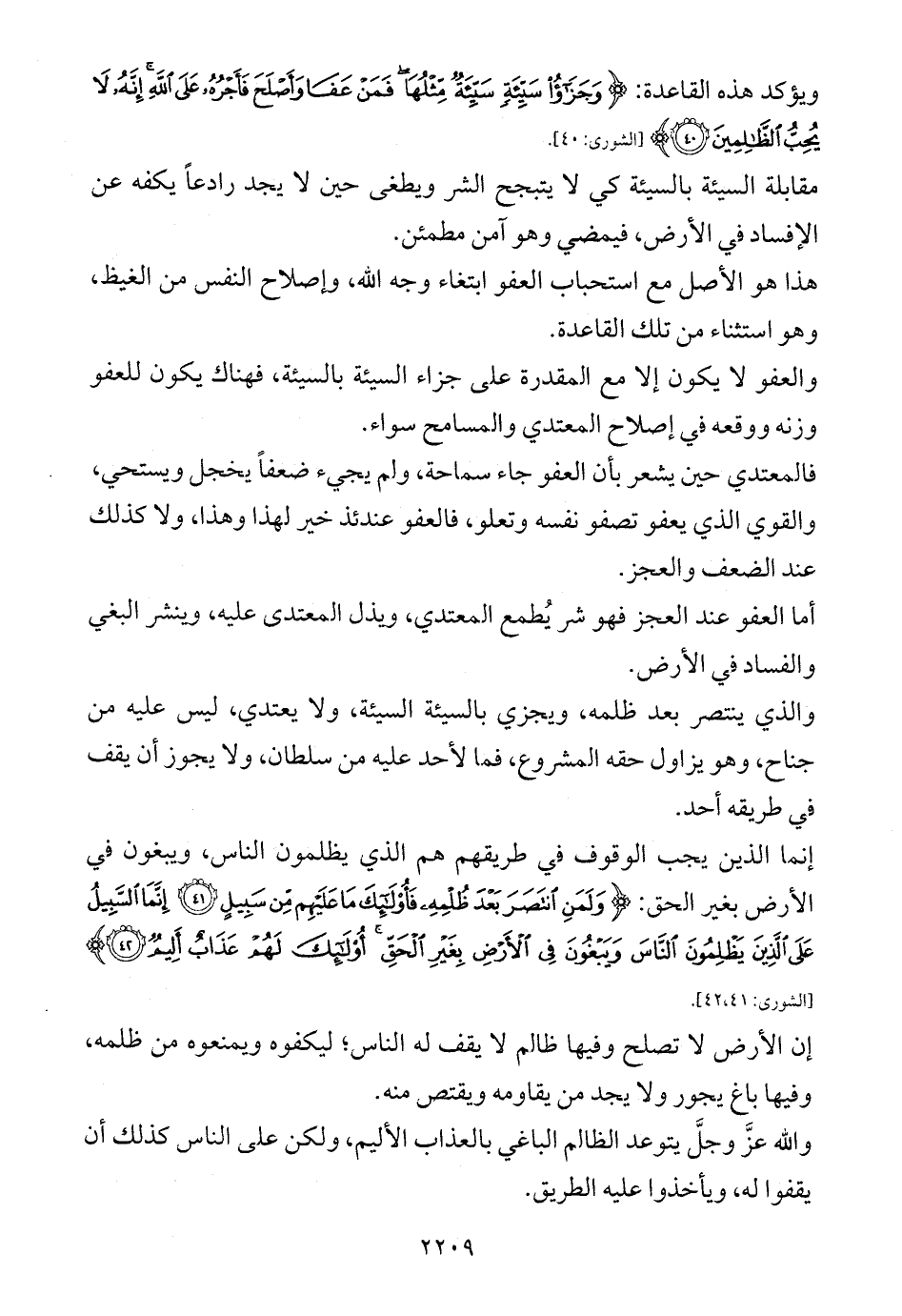 ويؤكد هذه القاعدة: {وَجَزَاءُ سَيِّئَةٍ سَيِّئَةٌ مِثْلُهَا فَمَنْ عَفَا وَأَصْلَحَ فَأَجْرُهُ عَلَى اللَّهِ إِنَّهُ لَا يُحِبُّ الظَّالِمِينَ (40)} [الشورى: 40].