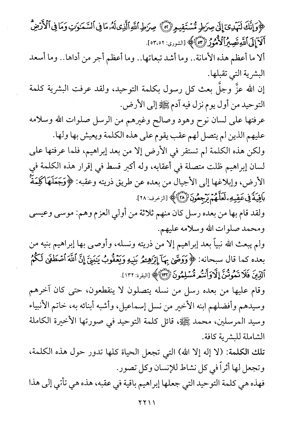 ألا ما أعظم هذه الأمانة .. وما أشد تبعاتها .. وما أعظم أجر من أداها .. وما أسعد البشرية التي تقبلها.