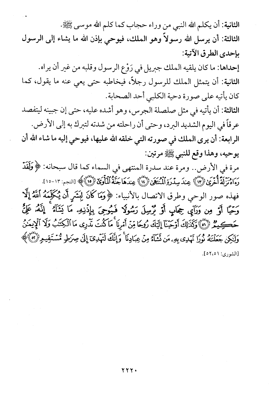 فهذه صور الوحي وطرق الاتصال بالأنبياء: {وَمَا كَانَ لِبَشَرٍ أَنْ يُكَلِّمَهُ اللَّهُ إِلَّا وَحْيًا أَوْ مِنْ وَرَاءِ حِجَابٍ أَوْ يُرْسِلَ رَسُولًا فَيُوحِيَ بِإِذْنِهِ مَا يَشَاءُ إِنَّهُ عَلِيٌّ حَكِيمٌ (51) وَكَذَلِكَ أَوْحَيْنَا إِلَيْكَ رُوحًا مِنْ أَمْرِنَا مَا كُنْتَ تَدْرِي مَا الْكِتَابُ وَلَا الْإِيمَانُ وَلَكِنْ جَعَلْنَاهُ نُورًا نَهْدِي بِهِ مَنْ نَشَاءُ مِنْ عِبَادِنَا وَإِنَّكَ لَتَهْدِي إِلَى صِرَاطٍ مُسْتَقِيمٍ (52)} [الشورى: 51،52].
