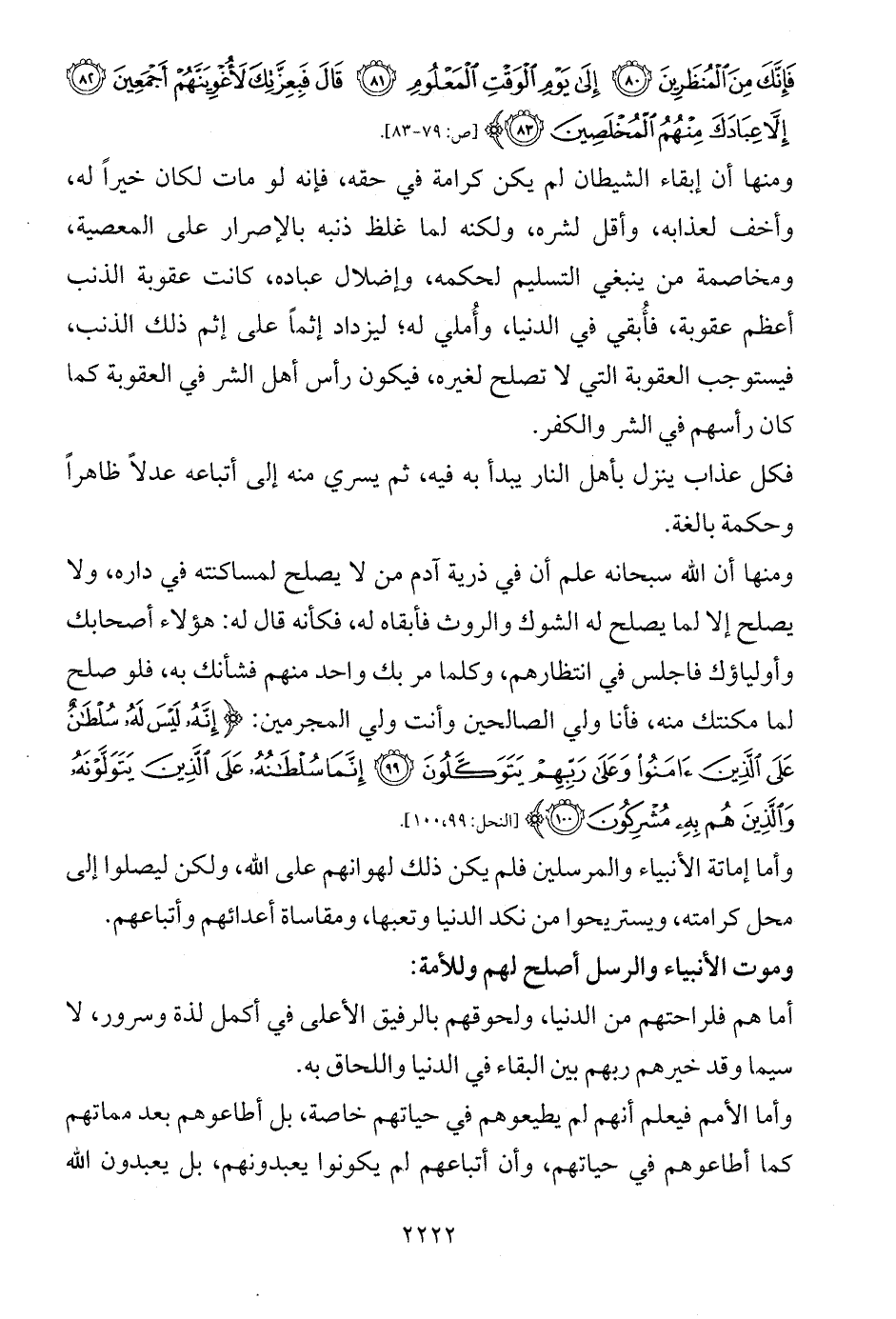فَإِنَّكَ مِنَ الْمُنْظَرِينَ (80) إِلَى يَوْمِ الْوَقْتِ الْمَعْلُومِ (81) قَالَ فَبِعِزَّتِكَ لَأُغْوِيَنَّهُمْ أَجْمَعِينَ (82) إِلَّا عِبَادَكَ مِنْهُمُ الْمُخْلَصِينَ (83)} [ص: 79 - 83].