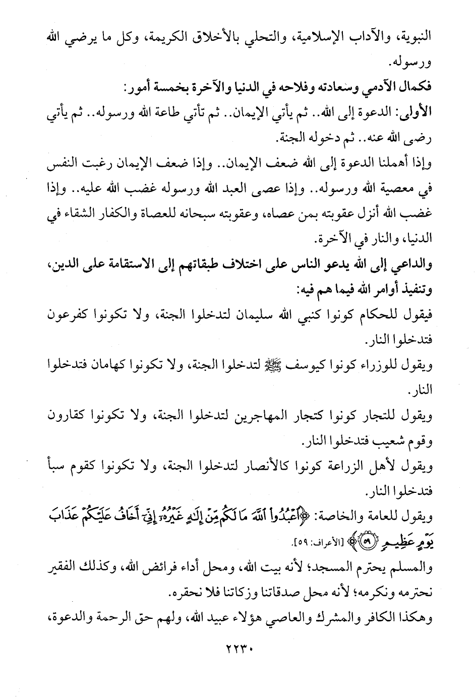 فكمال الآدمي وسعادته وفلاحه في الدنيا والآخرة بخمسة أمور: