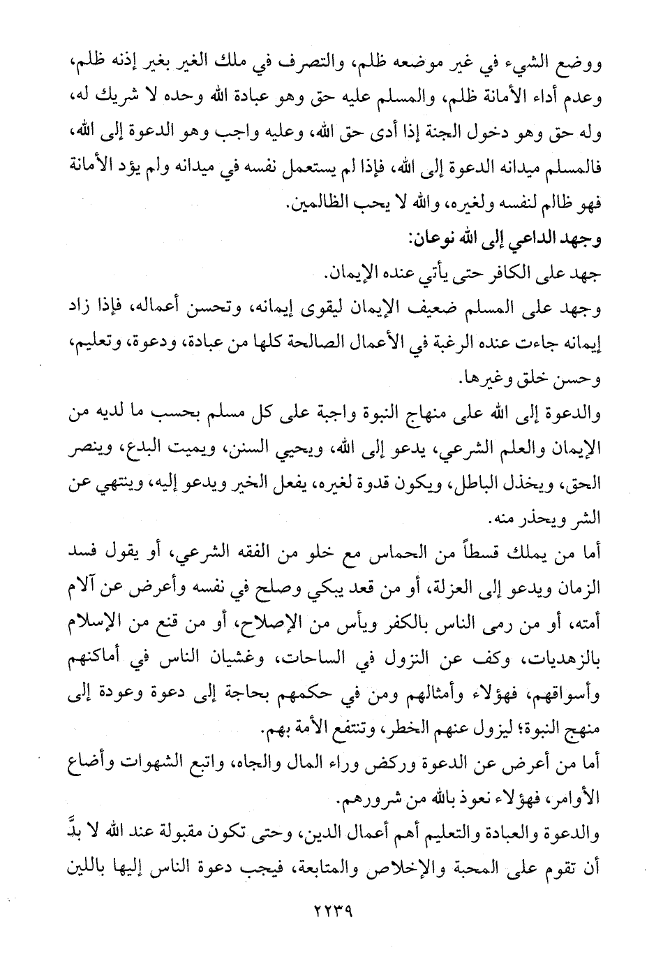 والدعوة إلى الله على منهاج النبوة واجبة على كل مسلم بحسب ما لديه من الإيمان والعلم الشرعي، يدعو إلى الله، ويحيي السنن، ويميت البدع، وينصر الحق، ويخذل الباطل، ويكون قدوة لغيره، يفعل الخير ويدعو إليه، وينتهي عن الشر ويحذر منه.