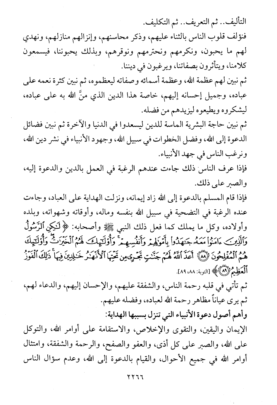 ثم نبين حاجة البشرية الماسة للدين ليسعدوا في الدنيا والآخرة ثم نبين فضائل الدعوة إلى الله، وفضل الخطوات في سبيل الله، وجهود الأنبياء في نشر دين الله، ونرغب الناس في جهد الأنبياء.