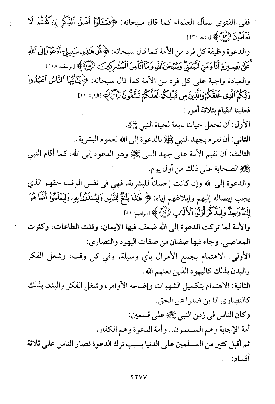ثم أقبل كثير من المسلمين على الدنيا بسبب ترك الدعوة فصار الناس على ثلاثة أقسام: