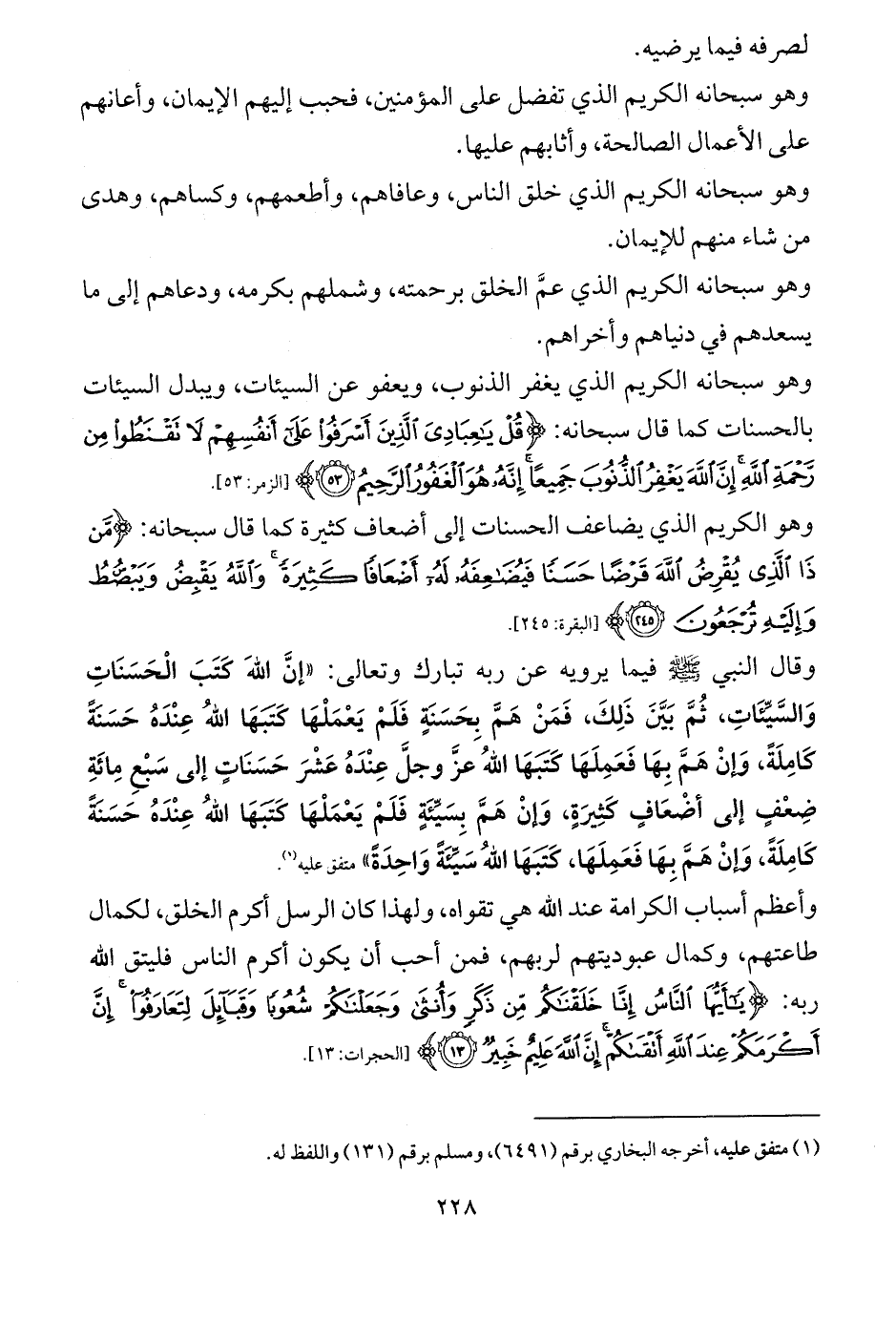 وهو سبحانه الكريم الذي عمَّ الخلق برحمته، وشملهم بكرمه، ودعاهم إلى ما يسعدهم في دنياهم وأخراهم.