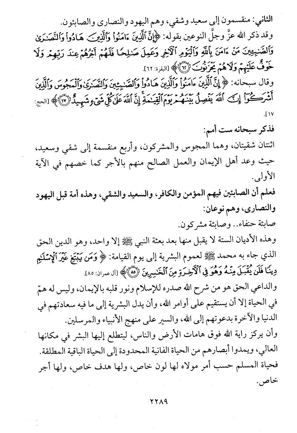 وقال سبحانه: {إِنَّ الَّذِينَ آمَنُوا وَالَّذِينَ هَادُوا وَالصَّابِئِينَ وَالنَّصَارَى وَالْمَجُوسَ وَالَّذِينَ أَشْرَكُوا إِنَّ اللَّهَ يَفْصِلُ بَيْنَهُمْ يَوْمَ الْقِيَامَةِ إِنَّ اللَّهَ عَلَى كُلِّ شَيْءٍ شَهِيدٌ (17)} [الحج: 17].
