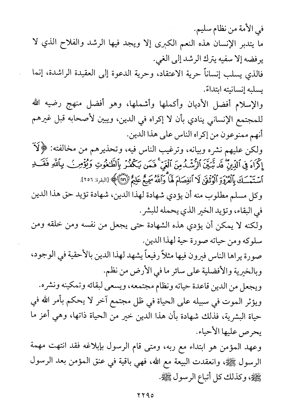 ولكن عليهم نشره وبيانه، وترغيب الناس فيه، وتحذيرهم من مخالفته: {لَا إِكْرَاهَ فِي الدِّينِ قَدْ تَبَيَّنَ الرُّشْدُ مِنَ الْغَيِّ فَمَنْ يَكْفُرْ بِالطَّاغُوتِ وَيُؤْمِنْ بِاللَّهِ فَقَدِ اسْتَمْسَكَ بِالْعُرْوَةِ الْوُثْقَى لَا انْفِصَامَ لَهَا وَاللَّهُ سَمِيعٌ عَلِيمٌ (256)} [البقرة: 256].