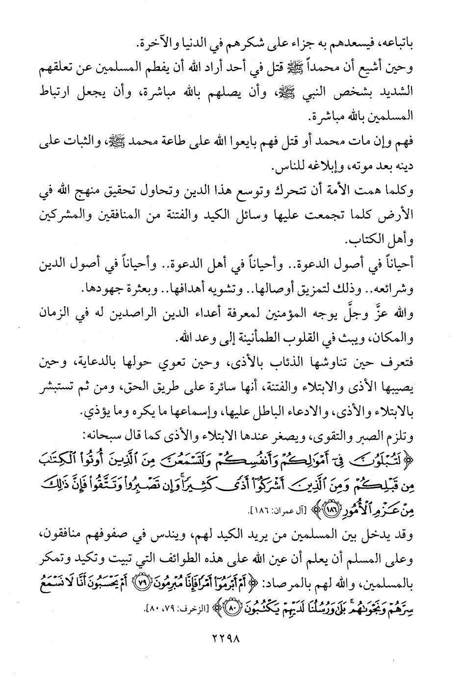 وحين أشيع أن محمداً - صلى الله عليه وسلم - قتل في أحد أراد الله أن يفطم المسلمين عن تعلقهم الشديد بشخص النبي - صلى الله عليه وسلم -، وأن يصلهم بالله مباشرة، وأن يجعل ارتباط المسلمين بالله مباشرة.