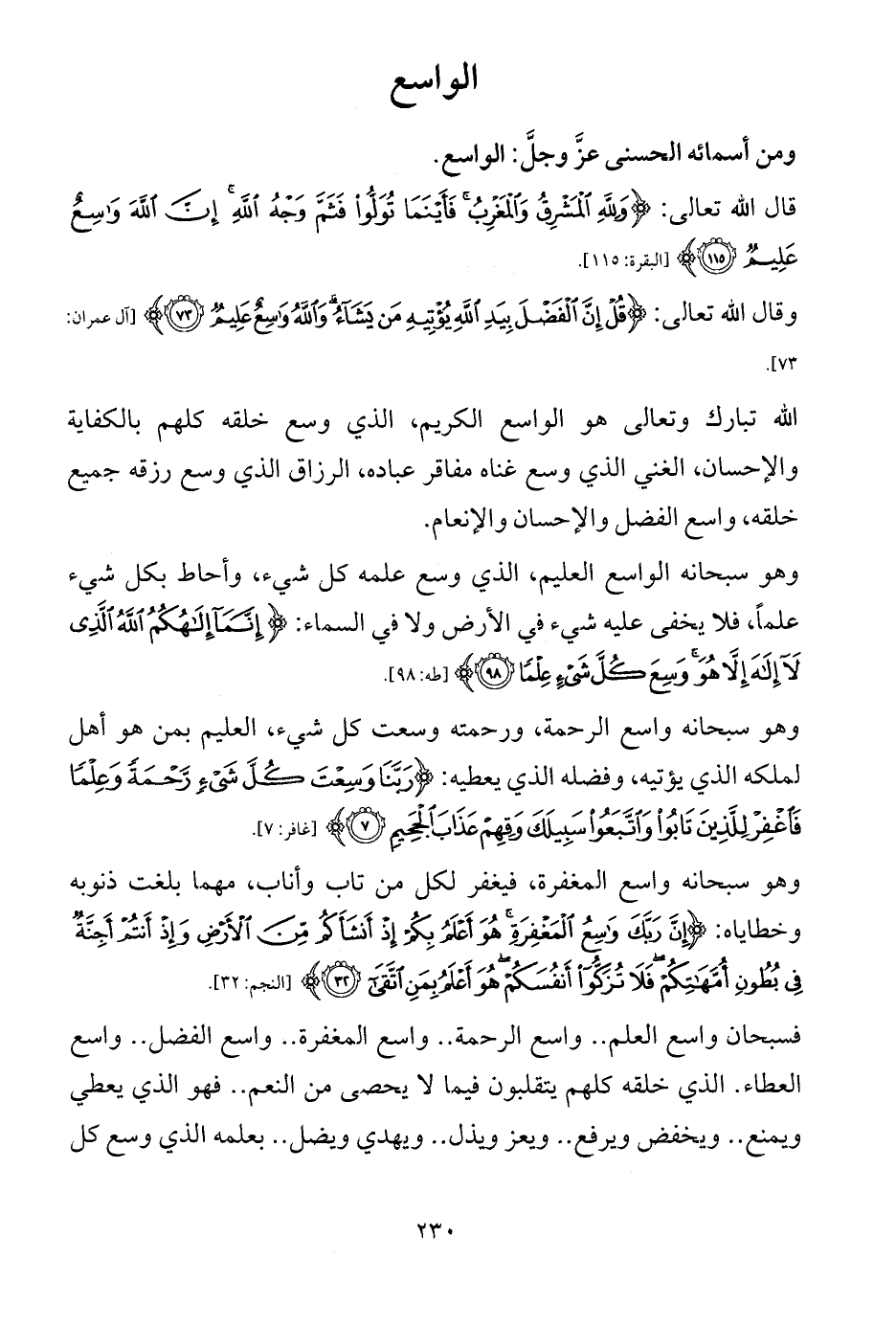 فسبحان واسع العلم .. واسع الرحمة .. واسع المغفرة .. واسع الفضل .. واسع العطاء. الذي خلقه كلهم يتقلبون فيما لا يحصى من النعم .. فهو الذي يعطي ويمنع .. ويخفض ويرفع .. ويعز ويذل .. ويهدي ويضل .. بعلمه الذي وسع كل