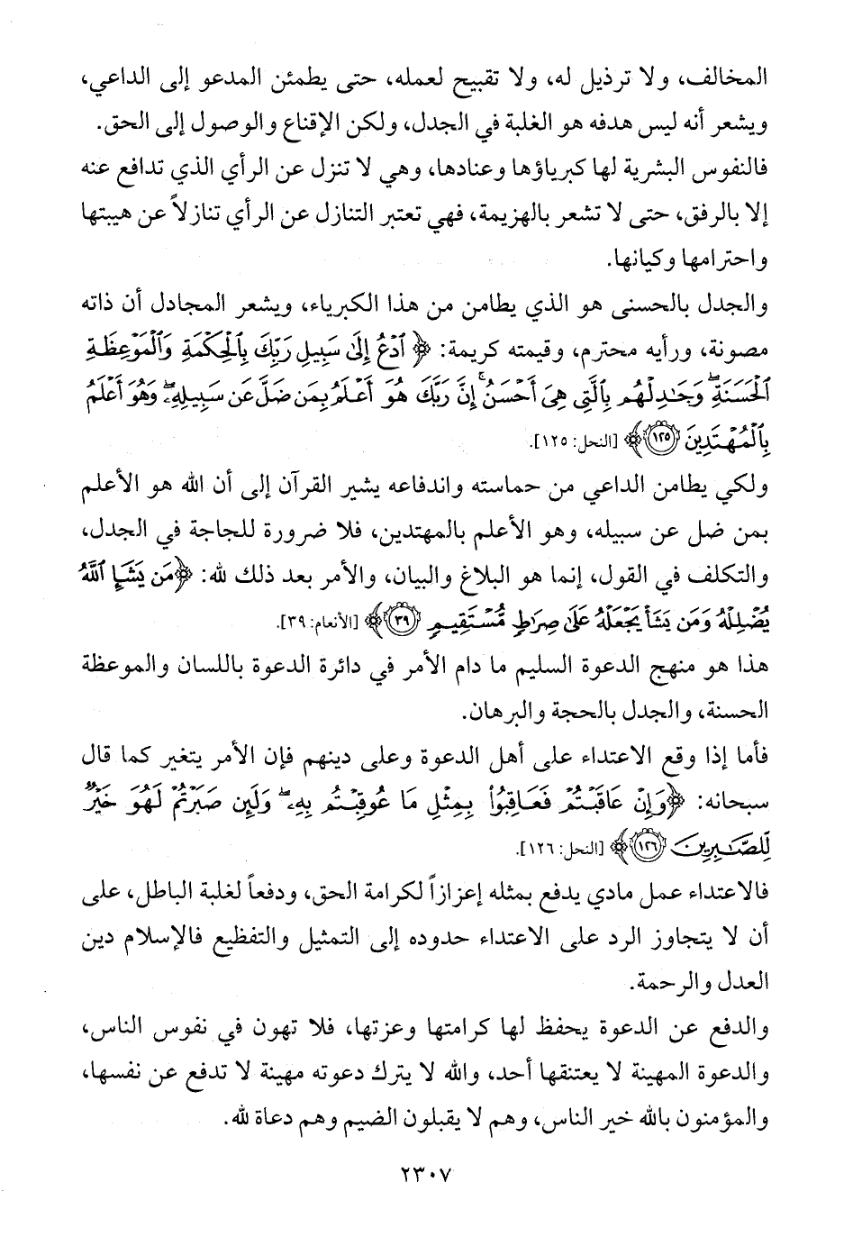 هذا هو منهج الدعوة السليم ما دام الأمر في دائرة الدعوة باللسان والموعظة الحسنة، والجدل بالحجة والبرهان.