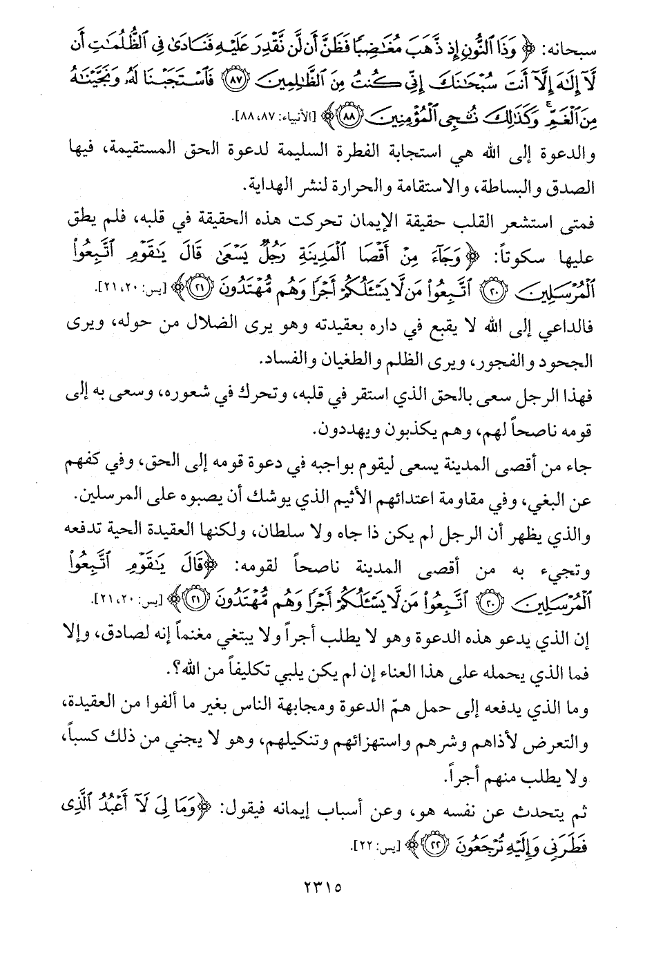 سبحانه: {وَذَا النُّونِ إِذْ ذَهَبَ مُغَاضِبًا فَظَنَّ أَنْ لَنْ نَقْدِرَ عَلَيْهِ فَنَادَى فِي الظُّلُمَاتِ أَنْ لَا إِلَهَ إِلَّا أَنْتَ سُبْحَانَكَ إِنِّي كُنْتُ مِنَ الظَّالِمِينَ (87) فَاسْتَجَبْنَا لَهُ وَنَجَّيْنَاهُ مِنَ الْغَمِّ وَكَذَلِكَ نُنْجِي الْمُؤْمِنِينَ (88)} [الأنبياء: 87، 88].