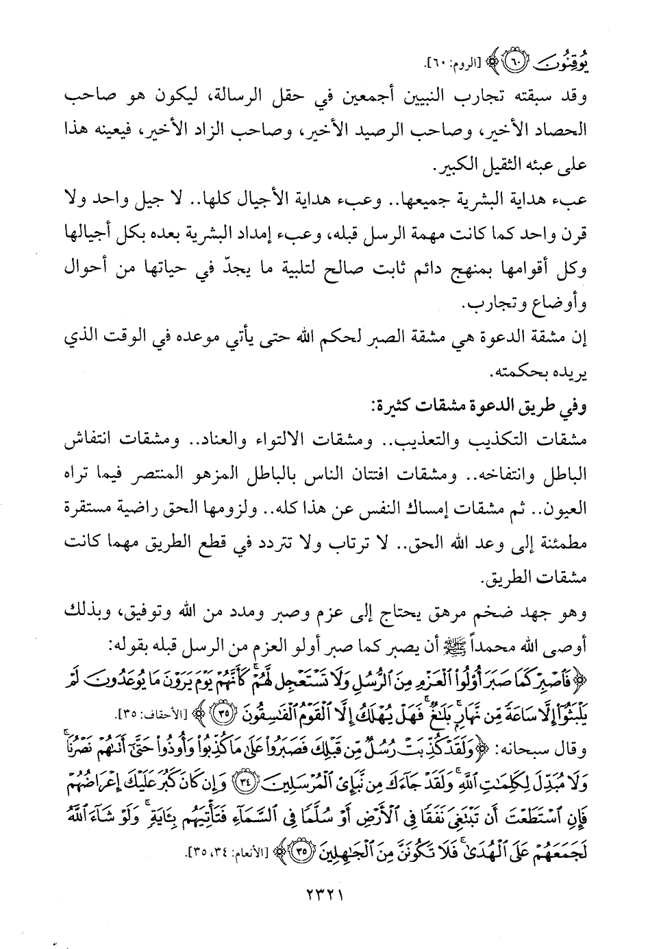 وهو جهد ضخم مرهق يحتاج إلى عزم وصبر ومدد من الله وتوفيق، وبذلك أوصى الله محمداً - صلى الله عليه وسلم - أن يصبر كما صبر أولو العزم من الرسل قبله بقوله: