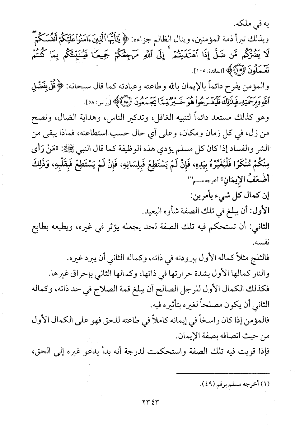 فكذلك الكمال الأول للرجل الصالح أن يبلغ قمة الصلاح في حد ذاته، وكماله الثاني أن يكون مصلحاً لغيره بتأثيره فيه.