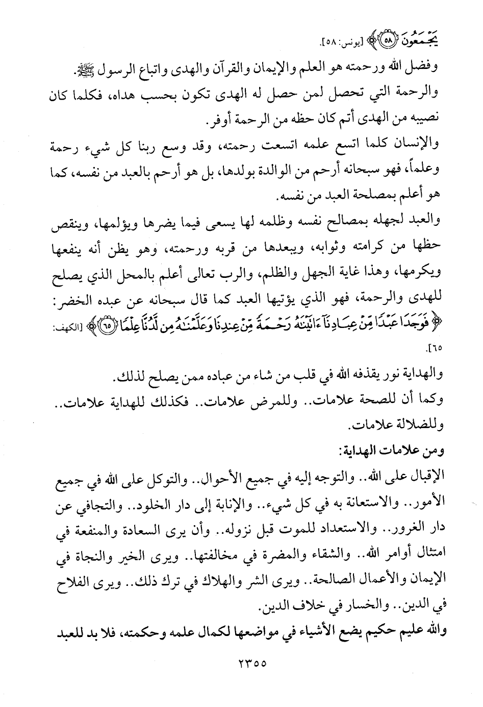 والرحمة التي تحصل لمن حصل له الهدى تكون بحسب هداه، فكلما كان نصيبه من الهدى أتم كان حظه من الرحمة أوفر.