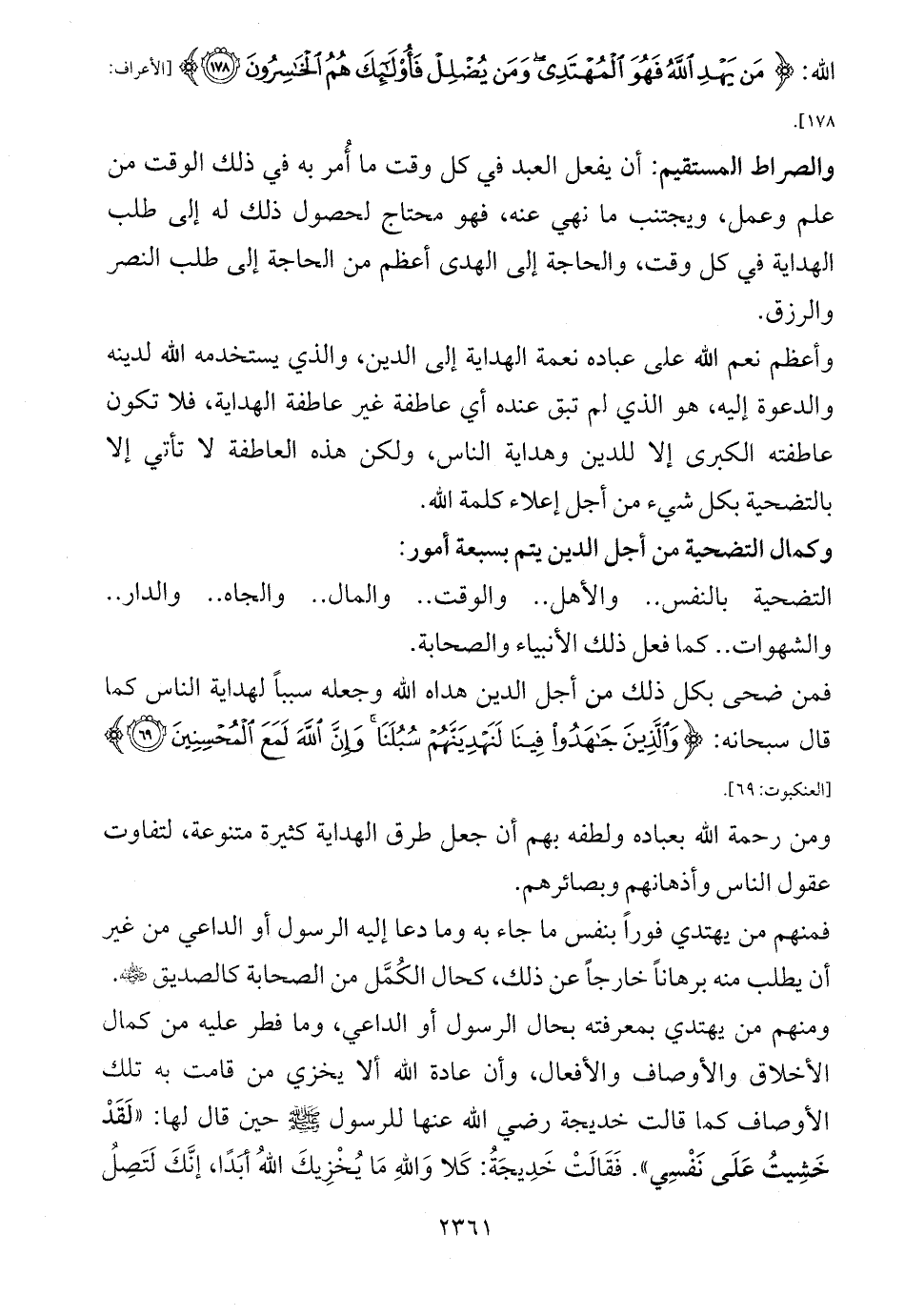 وكمال التضحية من أجل الدين يتم بسبعة أمور: