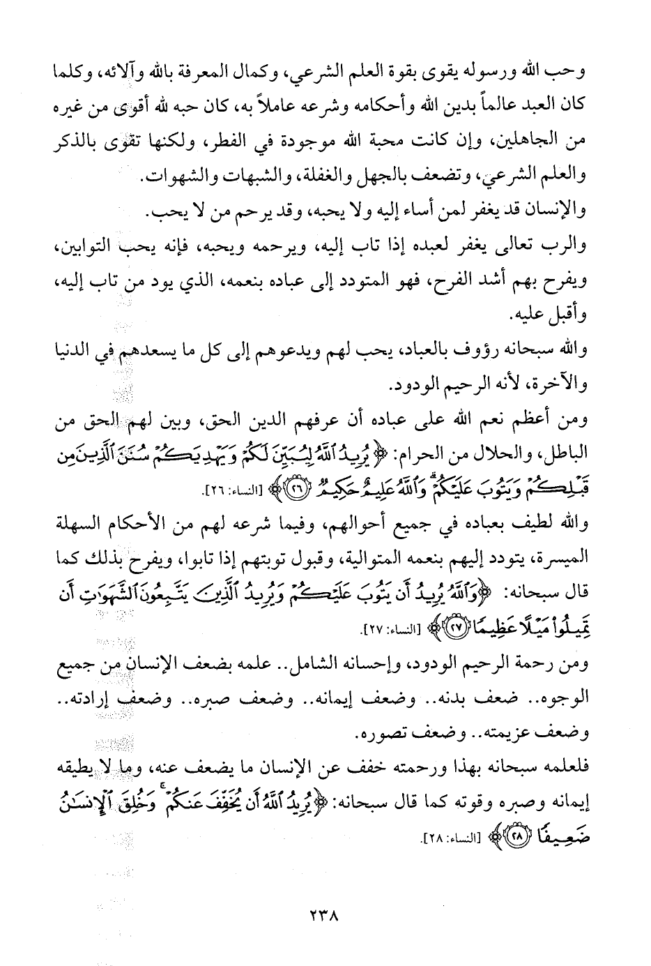 والله لطيف بعباده في جميع أحوالهم، وفيما شرعه لهم من الأحكام السهلة الميسرة، يتودد إليهم بنعمه المتوالية، وقبول توبتهم إذا تابوا، ويفرح بذلك كما قال سبحانه: {وَاللَّهُ يُرِيدُ أَنْ يَتُوبَ عَلَيْكُمْ وَيُرِيدُ الَّذِينَ يَتَّبِعُونَ الشَّهَوَاتِ أَنْ تَمِيلُوا مَيْلًا عَظِيمًا (27)} [النساء: 27].