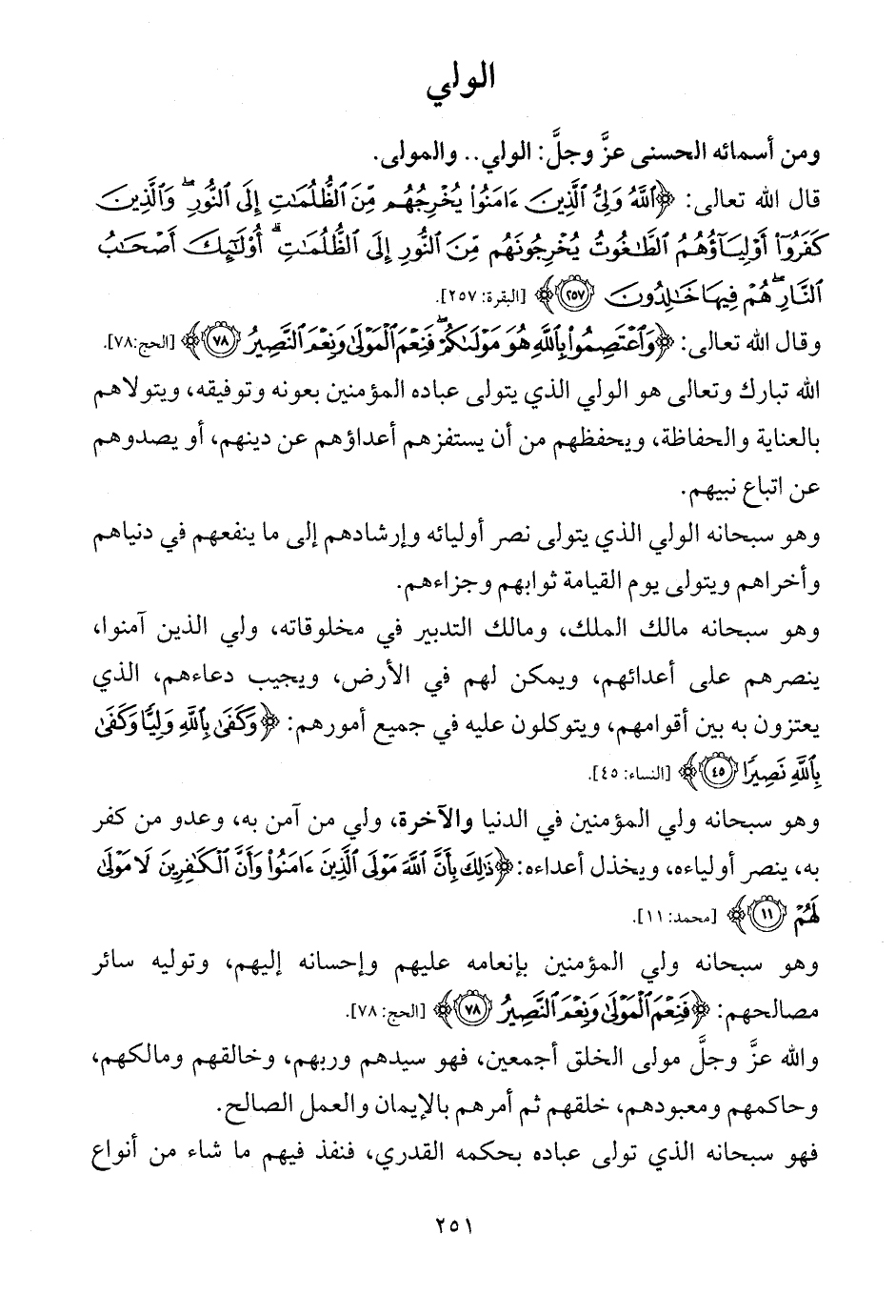 وهو سبحانه الولي الذي يتولى نصر أوليائه وإرشادهم إلى ما ينفعهم في دنياهم وأخراهم ويتولى يوم القيامة ثوابهم وجزاءهم.