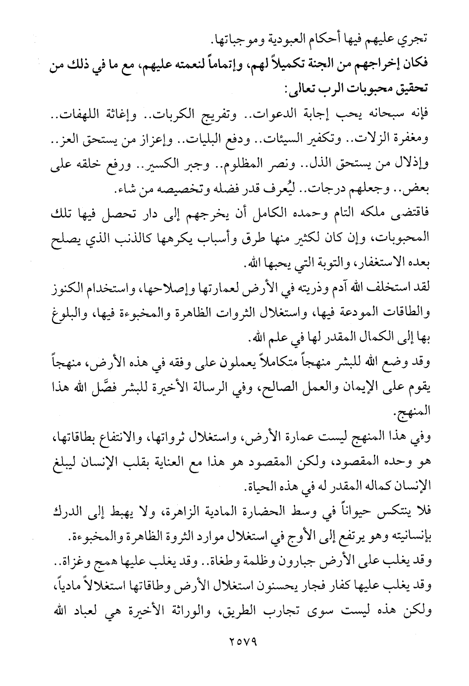 وفي هذا المنهج ليست عمارة الأرض، واستغلال ثرواتها، والانتفاع بطاقاتها، هو وحده المقصود، ولكن المقصود هو هذا مع العناية بقلب الإنسان ليبلغ الإنسان كماله المقدر له في هذه الحياة.