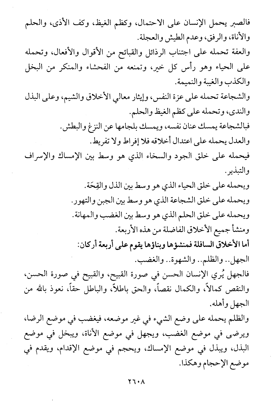 أما الأخلاق السافلة فمنشؤها وبناؤها يقوم على أربعة أركان: