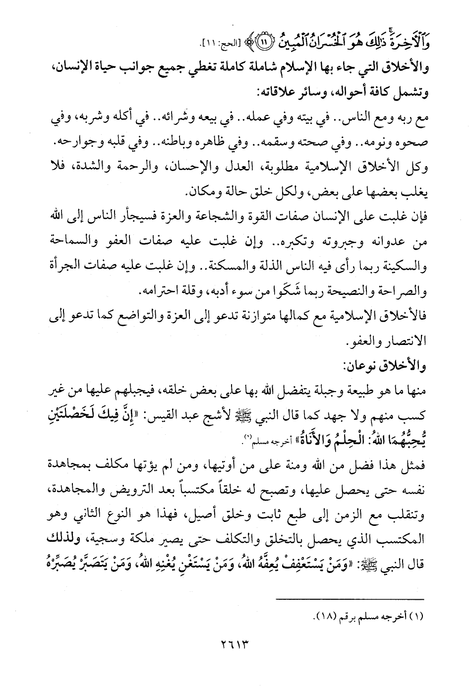 والأخلاق التي جاء بها الإسلام شاملة كاملة تغطي جميع جوانب حياة الإنسان، وتشمل كافة أحواله، وسائر علاقاته: