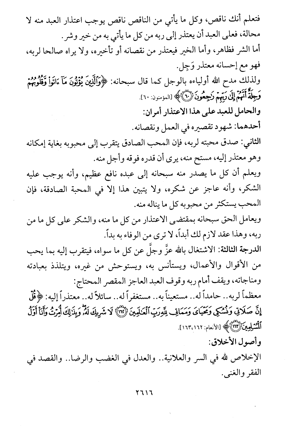 فتعلم أنك ناقص، وكل ما يأتي من الناقص ناقص يوجب اعتذار العبد منه لا محالة، فعلى العبد أن يعتذر إلى ربه من كل ما يأتي به من خير وشر.